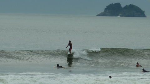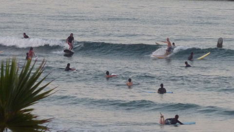 | 台風18号のウネリです。磯ノ浦から人がいっぱい 流れてきて浜の宮も磯ノ浦状態です。たまらんわぁ。 ノンビリいい波に乗りたいもんです。 |