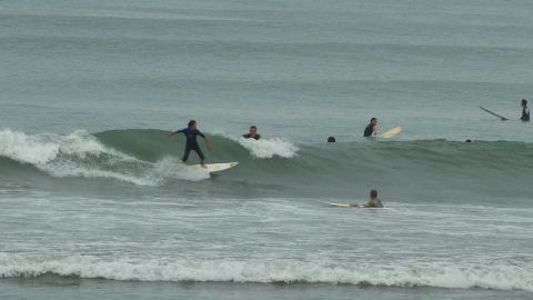 | ショボイ波ですが人はそこそこ多いです。困ったもんだ。 チョイ乗りでしたけど、まあまあ楽しめました。 3回目にしてヒザ以上なし...(+o+) |