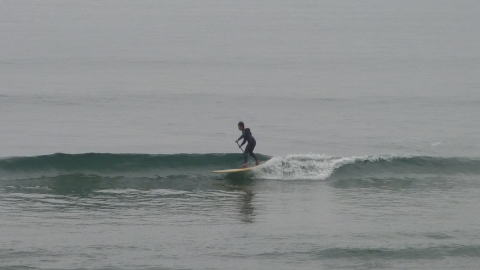 | 今日は大潮。駐車場には夜明け前に到着。 波の音は聞こえるものの、いまいち波が見えない。 夜明けとともに準備して入水。 駐車場前でしばらく、その後、好きなポイントへ移動。 満潮時はまったくダメでしたが、引き始めてから いいsetが入りだしました。 ロングライドもでき、なかなか楽しめた。 7時頃には駐車場前は、「磯ノ浦」状態。困ったもんだ。 |