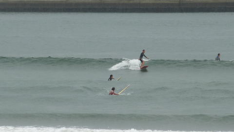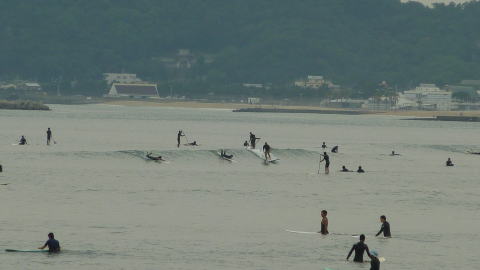 | 昨日後半磯ノ浦は頭まで上がっていたので、今日は浜の宮 だろうと来ましたが、イマイチ上がっておらず...。 またset間隔も長い。SUPのみなさん気持ちよさそう。 |