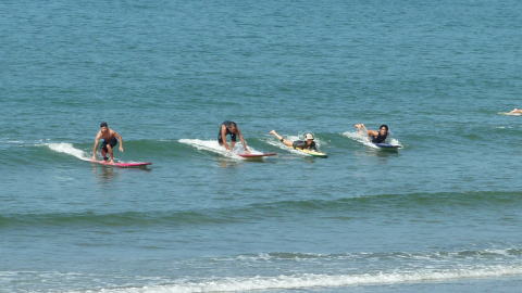 | 今年初入水。ヒザでも遊べるし、6月間近でまだ 1回も波乗りしてないのはイカン!と。 さすがにこの波では空いてました。 ロンスリでも十分でしたが、風が出て寒くなってきたので 8時で上がりました。 この日は小笠原諸島に行った台風2号のウネリが やっと回ってきて、潮の引いた午後にはコシあたりまで サイズが上がったようです。 |