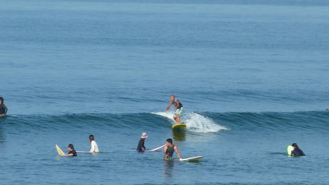 | 昨日までのウネリもすっかり収まってしまいました。 しかし、昨日の波予想で「サイズダウンでしょう。」と 書いてくれたおかげで空いてました。ヤッホー!! |